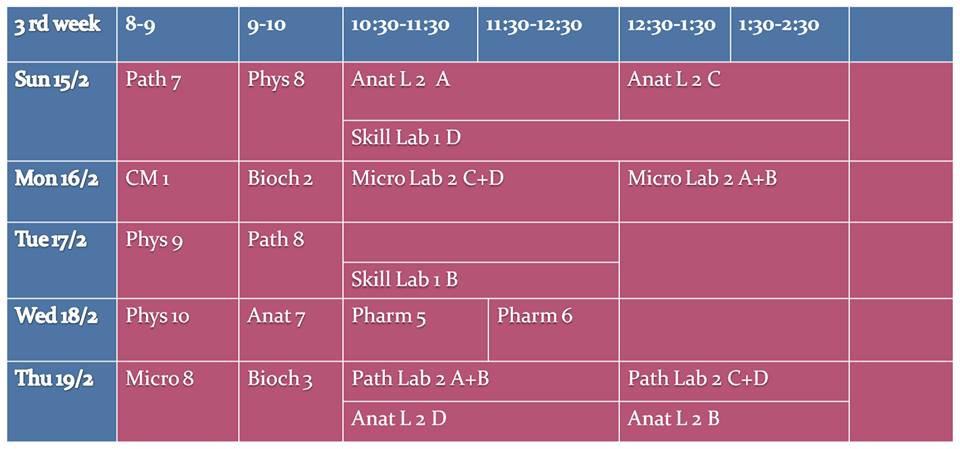 جدول الاسبوع الثالث