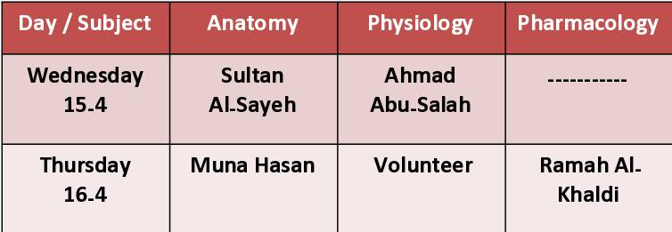 يهنّئكم فريق شفاء على الانتهاء بسلامة من السستم العظيم و يتقدّم بخالص الشّكر و التّقدير لكلّ من ساعد شفاء على تخطّي السستم بنجاح ، و كلّ من تطوع لعمل الشّيتات و النوتات ، و يخصّ بالشكر الزميلتين “ولاء اسعيد ” لتطوعها لعمل معظم شيتات الفسيولوجي و ” راما الخالدي” لعمل جميع شيتات الفارما ، سائلين المولى أن يبارك لكم تميّزكم و ينفع بكم و يديمكم للخير أهلًا .