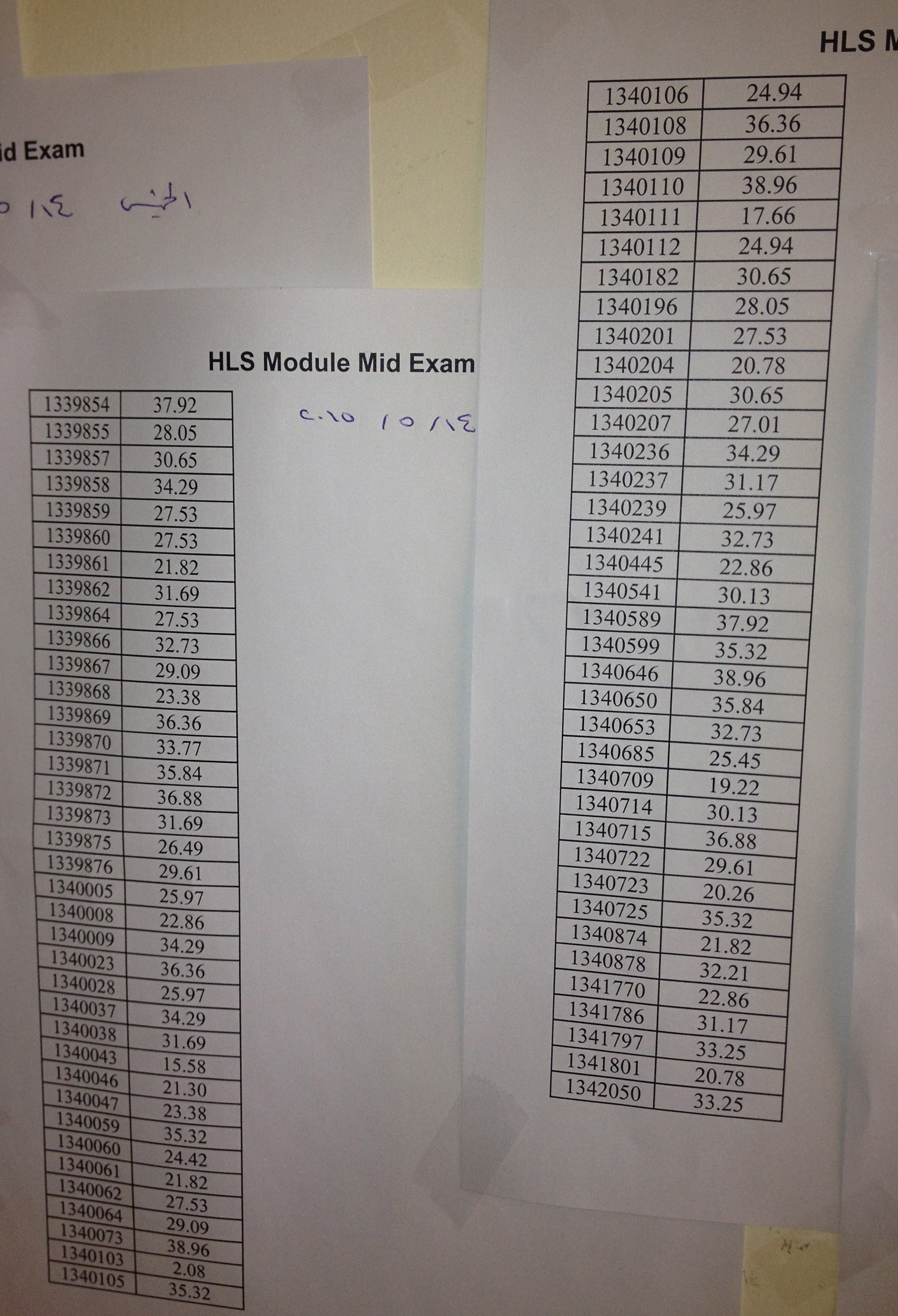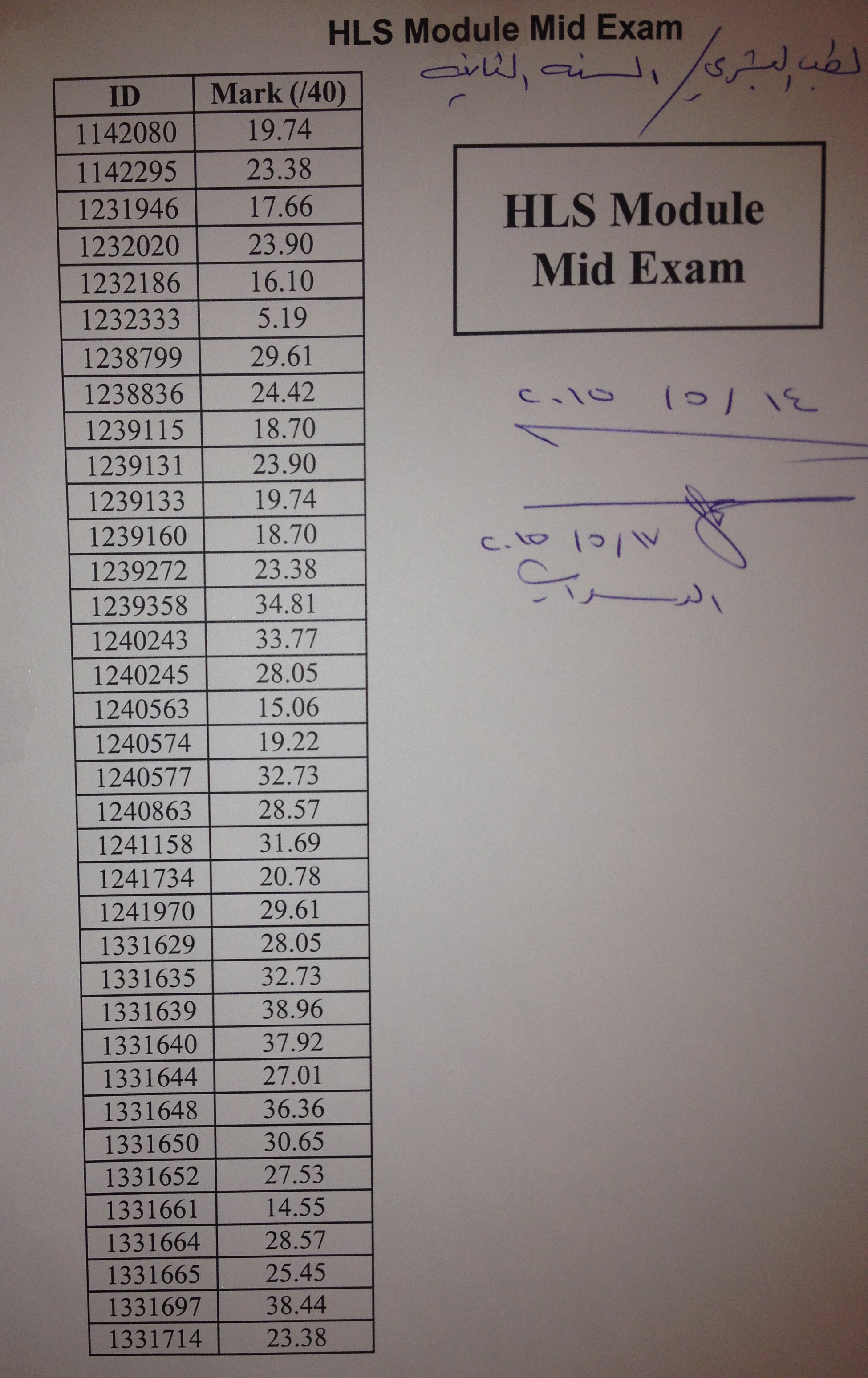 نضع بين ايديكم علامات الامتحان النصفي لسيستيم الـHLS :